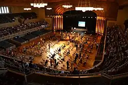 Closed in 1986 due to seismic concerns, the building fell into disrepair, and re-opened in 1996, after renovation, as part of the Sacramento Convention Center Complex.[4] The auditorium houses The Jean Runyon Little Theater and Memorial Hall.[5] The main auditorium seats 3,849, while the Jean Runyon Little Theater seats 272.[5]