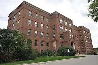 Sacred Heart Hospital, also known as the Floyd Valley Apartments, is a historic building located in Le Mars, Iowa, United States. Construction of the building began in 1921. It was designed by Sioux City architect William Steele and Riesche & Sanborn was the contractor. The five-story brick structure was completed two years later for $350,000.[2] The Sisters of St. Francis from Dubuque operated the hospital for the next 43 years. In addition to the hospital, the building also housed Sacred Heart Nursing School from 1923 to 1938. On December 1, 1966, the City of Le Mars took over the operation of the hospital, which was renamed Floyd Valley Hospital at that time. They continued to use the Sacred Heart building. A capital campaign to build a new facility was begun in 1972, and the present hospital on Iowa Highway 3 was completed in 1976. This building has subsequently been converted into apartments. It was listed on the National Register of Historic Places in 2010.[1]