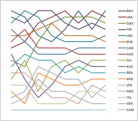| Pos | Sail no. | Boat name | Crew | Country | I | II | III | IV | V | VI | VII | Tot | Pts | |||||||
