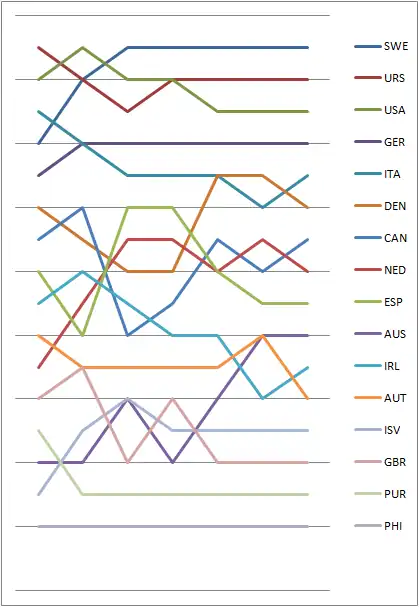 Graph showing the daily standings in the Tempest during the 1976 Summer Olympics