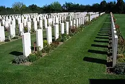 Saint-Charles-de-Percy War Cemetery is a British Second World War cemetery of Commonwealth soldiers located 1 km (0.62 mi) west of the village of Saint-Charles-de-Percy, some 44 km (27 mi) south-west of Caen in Normandy. The cemetery contains 703 identified Commonwealth war graves and is the southernmost British cemetery in Normandy.[1]