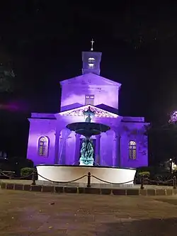 Constructed according to the plans of an engineer called Paradis on the site of a church that had preceded it in the 18th century, the first foundation stone was laid on 4 November 1829, by the governor of Penfentenyo. Despite being consecrated as a cathedral in 1860 by Monsignor Maupoint, bishop of Saint-Denis de La Réunion, it did not take its final form until 1863 with the construction of the western porch in the prostyle style and the later addition of a bell tower.[5] The whole building was registered as a monument historique on 13 October 1975.