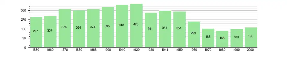 As of 2000, there were 76 people who were single and never married in the village. There were 106 married individuals, 11 widows or widowers and 3 individuals who are divorced.[5]