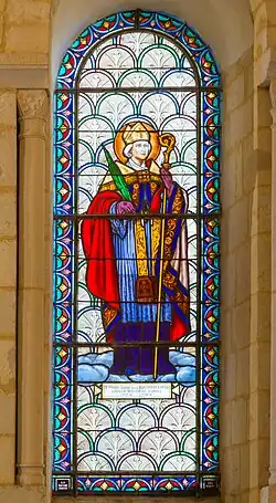 Pierre-Louis de La Rochefoucauld-Bayers, bishop of Saintes, one of the three murdered prelates. Window signed by Gustave Pierre Dagrant in the Basilique Saint-Eutrope de Saintes, Charente-Maritime.