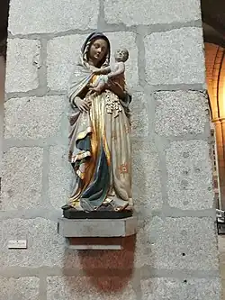 The Saint-Sauveur Abbey houses some statues and statue elements. The oldest is a statue of the Madonna in polychrome and gilded stone, dating from the 15th century. It was listed as a historical monument on April 9, 1999.[26] A walnut wood head of Christ kept in the sacristy likely comes from a 17th-century crucifix. The statue was listed as a historical monument on May 14, 1984.[27] Finally, a Virgin and Child statue, made of silver-plated metal on a pearwood core, was created in the first quarter of the 19th century. It was also listed as a historical monument on May 14, 1984.[28]