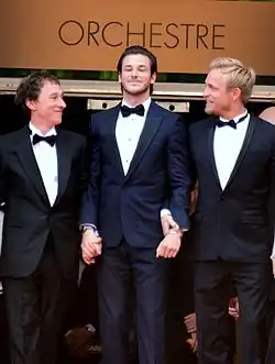 Bertrand Bonello, Gaspard Ulliel, and Jérémie Renier promoting the film at the 2014 Cannes Film Festival