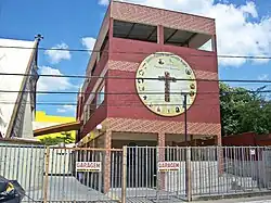 The temple was built on land donated by the Congregation of the Carmelite Sisters of Divine Providence that belonged to Colégio Angélica (English: Angélica college).[7] The three modules that make up the roof were built with steel donated by Usiminas. Still in the late 1980s, the parish acquired all 1,300 chairs of the old Cine Marrocos, bought and then donated by the faithful themselves after the closing of the movie theater.[8]