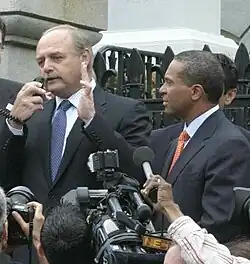 On Sunday, January 25, 2009, DiMasi sent a letter to all members of the House informing them of his resignation from both his position as speaker of the House and his seat in the House, effective at 5:00 PM on Tuesday, January 27.[16] His resignation made DiMasi the third straight Speaker of the Massachusetts House of Representatives to leave office under a legal or ethical cloud.[17] In 1996, then speaker Charles Flaherty resigned after being charged with income tax violations, and in 2004 then-speaker Thomas Finneran resigned amid a federal perjury investigation.[18] DiMasi was indicted on corruption charges on June 2, 2009.[19]