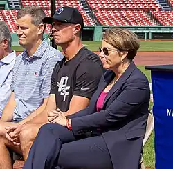Kennedy was named the successor to longtime Red Sox president Lucchino on August 1, 2015, when Lucchino announced his decision to retire from his executive positions at the close of the team's 2015 season.[6] Lucchino's CEO post was initially left vacant, and on August 18, 2015, the Red Sox also named veteran MLB executive Dave Dombrowski to the new position of president, baseball operations.[7][8] On August 2, 2017, the Red Sox and FSM announced Kennedy's appointment as CEO, and signed him to a new five-year contract as both CEO and president.[9] In March 2021, FSG announced that Kennedy had joined its ownership group and become a partner.[10] Three years later, Kennedy was promoted to FSG's chief executive post.[11]