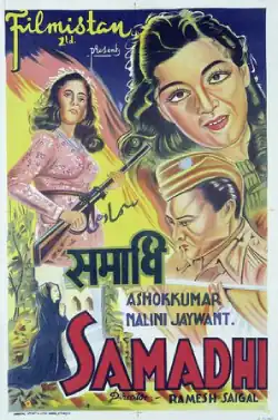 Samadhi is a 1950 Indian Hindi-language spy film directed by Ramesh Saigal.[3] A box office success, the film was the highest earning film of 1950, earning an approximate gross of Rs. 1,35,00,000 and a net of Rs. 75,00,000.[4]