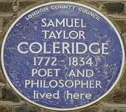 From 1814 to 1816, Coleridge rented from a local surgeon, Mr Page, in Calne, Wiltshire. He seemed able to focus on his work and manage his addiction, drafting Biographia Literaria. A blue plaque marks the property today.[39][40]