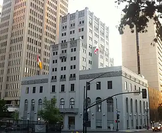 In the mid-1960s the building was converted to offices for Harcourt Brace Jovanovich after the club folded.[3][5] After HBJ vacated the building, they donated the property to the city in the fall of 1993.[6][7] In 1994 the City of San Diego and the Port of San Diego made arrangements with the World Trade Centers Association to establish a San Diego center located in the Athletic Club building, with the former two entities helping to bear the cost.[7] The plan to convert the building into commercial properties was projected to generate nearly half a million dollars per year in revenue for the city. The city also moved some of its own staff, including a portion of the Parks and Recreation Department into the property.[7]