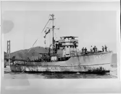 San Diego Marine built YMS-1-class minesweepers for the United States Navy in 1942 and 1943. The ships had a displacement of 270 tons, a length of 136 ft 0 in (41.45 m), a beam of 24 ft 6 in (7.47 m), a draft of 10 ft (3.0 m), and a top speed of 15 knots (28 km/h; 17 mph). The ships had a crew of 32. The vessels were armed with one 40 mm gun.[2][3]