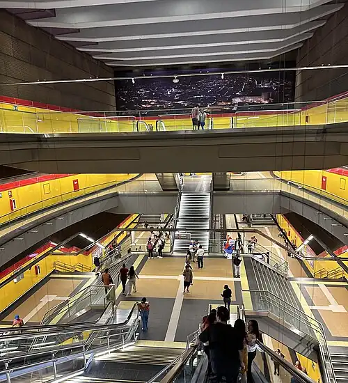 San Francisco is a Quito Metro station. It was officially opened on 21 December 2022 as part of the inaugural section of the system between Quitumbe and El Labrador. The revenue service started on 2 May 2023 and stopped on 11 May 2023.[1] It resumed on 1 December 2023.[2] The station is located between La Alameda and La Magdalena.[1]