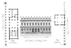 San Geminiano was a small but richly decorated church which was planned around a central dome.[1] The façade had elegant proportions and it was decorated with marble and stone from Istria. Internally, the building had a nave which ended in a chapel containing the high altar, along with aisles on either side which ended in smaller chapels. The interior was lavishly decorated. The author Leonico Goldini described the building as "almost like a ruby among pearls" when compared to other churches in Venice, while Francesco Sansovino, whose father had designed the church, described it as "extremely rich and well-conceived in design."[2]