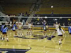 The Spartans had a volleyball team as early as 1971.[4] The program was officially organized in 1974, with Jane Ward as the first head coach;[5] she was also head volleyball coach at Cabrillo College.[6] Under her the Spartans finished at the top of their conference every year from 1974 to 1978 (the Northern California Intercollegiate Athletic Conference, then the Northern California Athletic Conference) and finished seventh in the NCAA Division I tournament in 1978.[6][7] Sheila Silvaggio was a first team All-American in 1978.[8]