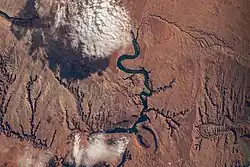 San Juan County lies in the southeastern corner of the state of Utah. Its borders coincide with the borders of the states of Colorado, New Mexico, and Arizona with Utah.[5] The convergence point of these borders, Four Corners Monument, is located at the extreme southeastern corner of the county.