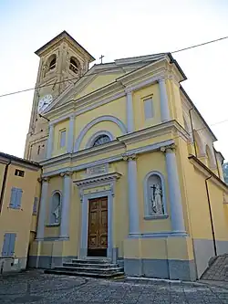 A small parish church at the site is first mentioned by the year 1005. By 1142, the church and the nearby castle and hamlet belonged to the Abbey of San Giovanni Evangelista of Parma. In the 18th century, a bell-tower was erected, but this and the church were partially ruined by an earthquake on 14 February 1834. The church was rebuilt using designs of Lorenzo Raschi; work completed by 1841. The facade was designed by Luigi Bianchi, and completed in 1868. The facade statuary, attributed to Agostino Ferrarini, was added in 1885. In 23 December 2008, an earthquake again damaged the building, and restructuring and restoration was completed in 2012.[1][2]