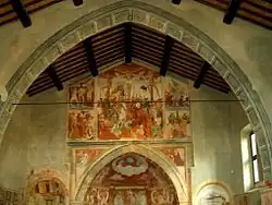 San Vito a Cavagliano is a church in Bellinzago Novarese, Italy. The church was built in the Romanesque style. The interior is richly decorated with frescos executed in the 15th or 16th centuries by a follower of Gaudenzio Ferrari.