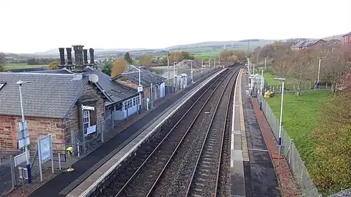 ![]() Sanquhar station from the road bridge looking towards Kirkconnel in 2021 | |||||