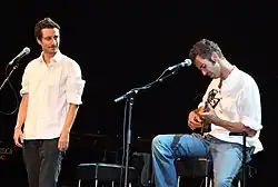 • Luca Bizzarri and Paolo Kessisoglu sang a satirical version of the song "In amore", originally performed by Gianni Morandi and Barbara Cola during the Sanremo Music Festival 1995.[36] The comic duo's version of the song, "Ti sputtanerò", featured lyrics referring to the clashes between Silvio Berlusconi and Gianfranco Fini.[35]