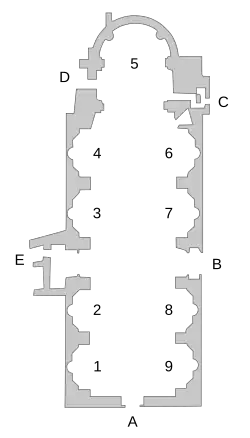 6-9: chapels in the right nave.