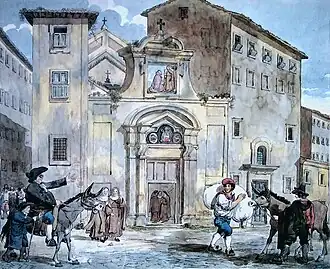 The early church fell into disrepair: towards the end of the 15th century it was so dilapidated that for the Jubilee of 1600 it was decided to build a new one, to a design by Mario Arconi. The oldest one, however, was not destroyed, but, according to sources, «post absidem novi templi profanata et in foenile redacta» ("deconsecrated behind the apse of the new temple and converted into a barn"). Restorations took place under the auspices of Francesco Maria del Monte, who was later buried in the church.[1]