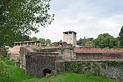 The Fortress of Santa Barbara (Fortezza di Santa Barbara) is a 14th-century urban castle erected to house troops guarding the town of Pistoia, in the region of Tuscany, Italy. While it is suggested that initially the fortress was named after a nearby church of Saint Barnabas, however, Saint Barbara is the patron saint of artillerymen.