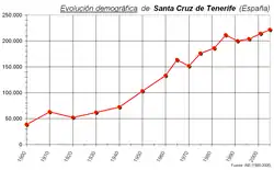 In 1990, the population peaked above the 200,000 mark. Santa Cruz de Tenerife and the city of San Cristóbal de La Laguna form a continuous urban area, with a combined population of over 380,000 inhabitants.[24][25]