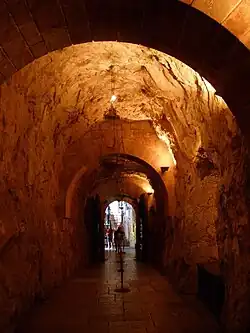 The origin of the cave as a cult site is controversial. The Christian tradition has it that Pelagius, chasing a criminal who had taken refuge in the cave, met a hermit who was venerating the Virgin Mary.[2] The hermit asked Pelagius to forgive the criminal, since the criminal had resorted to the protection of the Virgin, and said that one day he too would need to seek shelter in the cave.