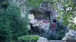 The Santa Cueva de Covadonga ("Holy Cave of Covadonga") is a Catholic sanctuary located in Asturias, northern Spain.[1] It is a cave in the Picos de Europa mountains, which gives its name to the parish of Covadonga in the municipality of Cangas de Onís. The name refers to the sanctuary, dedicated to the Virgin of Covadonga, where the first battle of the Reconquista took place in 718.