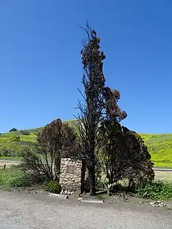 During the December 2017 Thomas Fire, trees adjacent to the monument were burned.[23] The monument itself, being made of stone, was unharmed.