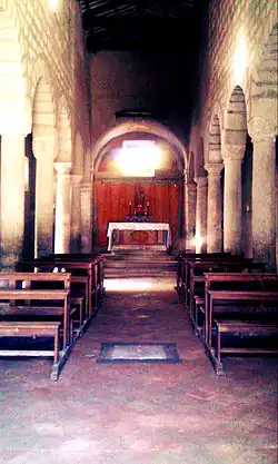 The building, clearly Romanesque, is the result of renovations that continued for centuries. According to critics, originally the church must have had three naves ending with three apses, separated by rows of four columns on each side. However, due to renovation works (probably to increase the church's capacity), between the sixteenth and seventeenth centuries, they built the apse, the small chapel and the last two spans toward the apse, to which the columns correspond, different from the others both in the shaft and in the capitals (Tuscan order).