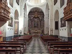 The construction of the church was started in the 17th century in a zone near the northern limits; in the same period a convent of the same name was built and assigned to the Reformed Conventuals of St Lawrence (padri Rifornati Conventuali di San Lorenzo). In 1660 the complex came under the jurisdiction of the aristocratic association of Pio Monte della Misericordia, and later of a nunnery allied with the Franciscan Order. A restoration led by Francesco Antonio Picchiatti, who availed himself of the collaboration of Cosimo Fanzago and Domenico Tango. The monastery, after the 19th-century Risorgimento, was named after Princess Maria Clotilde of Savoy, and became a school. The facade was reconstructed in 1790 by Camillo Leonti. The church has a Latin cross plan, with interior decoration by Giovanni Domenico Vinaccia. There are numerous paintings by Andrea Malinconico.