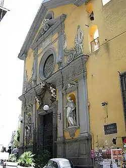 Santa Maria della Mercede e Sant'Alfonso Maria de' Liguori (formerly church of Santa Maria della Redenzione dei Captivi) is a Roman Catholic church located in via San Sebastiano #1 in the historic center of Naples, Italy. It rises on the South-Eastern corner of the intersection of Via San Sebastiano - Via Santa Maria di Constantinopoli, and the Vico San Pietro da Maiella and the outlet of the Via Port'Alba, a narrow alley starting at the medieval gate of Port'Alba. The Vico San Pietro da Maiella feeds into the southernmost end of Via dei Tribunali (the Decumanus Maximus of the ancient city), corner with via San Sebastiano, and on the Vico, neighboring to the east and behind the church, stands the Conservatory of San Pietro a Majella.