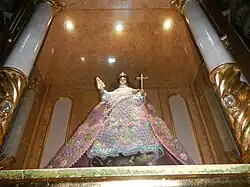 The Pamisa de Gracia (Tagalog-Spanish for “Mass of Grace”) is a ritual and Mass that begins every town fiesta. The Pamisa is done to give thanks for a miracle, birthday, or anniversary obtained or sustained through Saint Martha’s intercession. The family who will organize one borrows the icons of Saints Martha, Roch, and Isidore the Laborer from the houses of their respective camareros and camareras (literally “chamberlains”, the term for the official caretaker of a Santo).