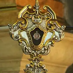 AttributesA palm branch in the right hand, cross on left, crocodile under her feet, diadem, sash