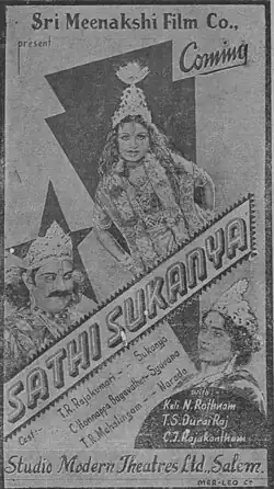 Sathi Sukanya is a 1942 Indian, Tamil-language film produced and directed by T. R. Sundaram.[1] The film starred C. Honnappa Bhagavathar and T. R. Rajakumari in the lead roles.[2]