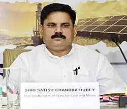 Satish Chandra Dubey (born 2 May 1975) is an Indian politician and the Minister of State of Coal and Mines in the Government of India.[1] He is a Member of Rajya Sabha from Bihar currently. He won the 2014 Indian general election from Valmiki Nagar (Lok Sabha constituency) being a Bhartiya Janata Party candidate. He was earlier elected to the Bihar Legislative Assembly from Narkatiaganj (Vidhan Sabha constituency) in 2010.[2] He serves as a Member of the 'Standing Committee on Labour'.[3]