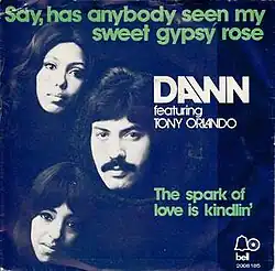 "Say, Has Anybody Seen My Sweet Gypsy Rose" is a 1973 song by the American pop music group Tony Orlando and Dawn. Written by Irwin Levine and L. Russell Brown, it was included on the group's 1973 album, Dawn's New Ragtime Follies.