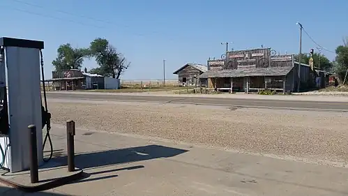 In July 2011, the 12-acre (4.9 ha) town and surrounding area—about 46 acres (19 ha) total—was listed for sale at $799,000. The sale included the post office (ZIP code 57780), Longhorn Saloon, a dance hall, bunkhouse, museum, and two stores.[3][6][7] It also included a train depot[7] that is on an abandoned line that was part of the Chicago, Milwaukee, St. Paul and Pacific Railroad and is the subject of a 104-mile (167 km) rails-to-trail project between Rapid City and Kadoka.[8]