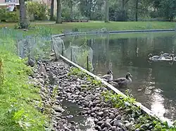The Schillingsbek is a stream, about 1.9 kilometres (1.2 mi) long, in Lokstedt district in the German city of Hamburg.[1] Between its source in the vicinity of Julius-Vosseler-Straße to its mouth on the Kollau the Lohbek is its only tributary. A pond in the Von Eicken Park acts as a retention basin and was originally flooded by the Schillingsbek. To improve its water quality the Schillingsbek has been diverted past this pond since 2009 so that only fresh water fills the retention basin when the water levels are medium to high.[2]