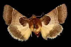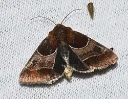 Schinia arcigera, the arcigera flower moth, is a moth of the family Noctuidae. The species was first described by Achille Guenée in 1852. It is found in North America from Nova Scotia to Florida, west to Arizona and Idaho, north to Saskatchewan.[1]