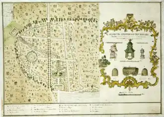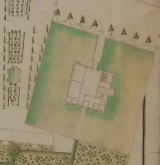Various plans were drawn to construct a new palace at Kärlich. In 1768, Jean Vilmart made a proposal.[6] Another proposal by the architect Johanness Seiz dates from 1771.[6] However, both designs were not realized. As the electoral treasury was not sufficient. And at the same time, a new Electoral palace was constructed as well in Koblenz. But what the Prince-Elector did do, was extending the palace gardens with a new English landscape garden, one of the earliest examples in Germany.