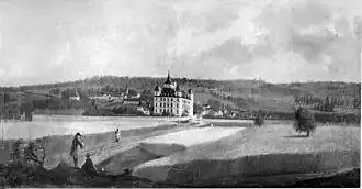 In 1480, Prince-Elector John II of Baden (1434–1503) built a new manor and hunting lodge in Kärlich.[2] Its exact location and appearance are not described in known sources. It is only mentioned that it stood by a pond ("nechst bay dem wayer"). During the Thirty Years' War, in the summer of 1635, the manor and hunting lodge, as well as large parts of Kärlich, were destroyed.[2]