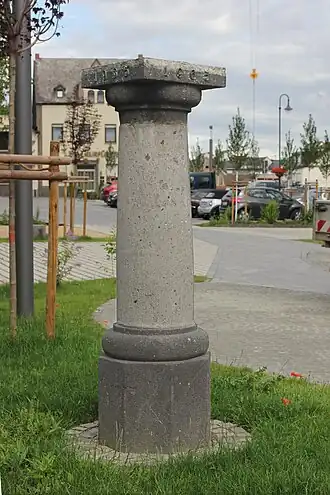 Prince-Elector Johann IX Philipp von Walderdorff (1701–1768) was an avid hunter and loved coming to Kärlich, which became one of his main retreats.[1] A stone cross erected in the grounds "Am Hoorweiher" commemorates this time.[1] In 1756, the Elector had invited people for a hunt.[1] The first chase took place in the area of Schloss Engers .[1] Then the Elector returned to Kärlich.[1] For a change, the chief forester organized a hare hunt.[1] The pack of hounds and the hunters soon tracked down a hare.[1] When one of the hunters, Mr. von Knoering, in a wild ride, tried to cut off the animal's path, he struck his head on the branch of a tree, mutilating his face beyond recognition, and he fell unconscious to the ground.[1] He died after six days.[1] The memorial cross was originally erected at the site of the accident.[1]