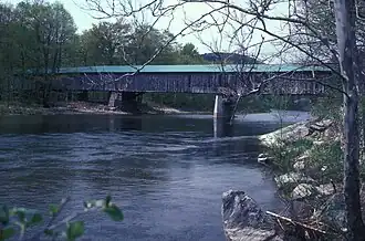 Scott Covered Bridge is a covered bridge spanning the West River in Townshend, Vermont. Built in 1870, it is at 277 feet (84 m) one of the longest covered bridges in the state (the West Dummerston Covered Bridge is longer by three feet), exhibiting three different forms of support: a Town lattice truss, kingpost trusses, and laminated arches. The bridge was listed on the National Register of Historic Places in 1973.[1] It is closed to all traffic.