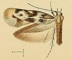 The wingspan is 8–9 mm. The forewings are greyish fuscous, mottled with ashy white. The base is sprinkled with ashy white scales. The hindwings are grey.[2]