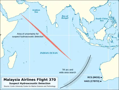 283. ^ a b c d e Wolz, Susanna (4 June 2014). "Curtin researchers in search for acoustic evidence of MH370". Curtin University. Retrieved 6 July 2014.