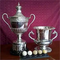 The 3rd Gray Trophy is described in the Golfing Annual of 1888-89 as "a chaste and elegant piece of silver plate" this being the third prize donated by club President Major Matthew Gray.[76] The whereabouts of this trophy is also unknown.